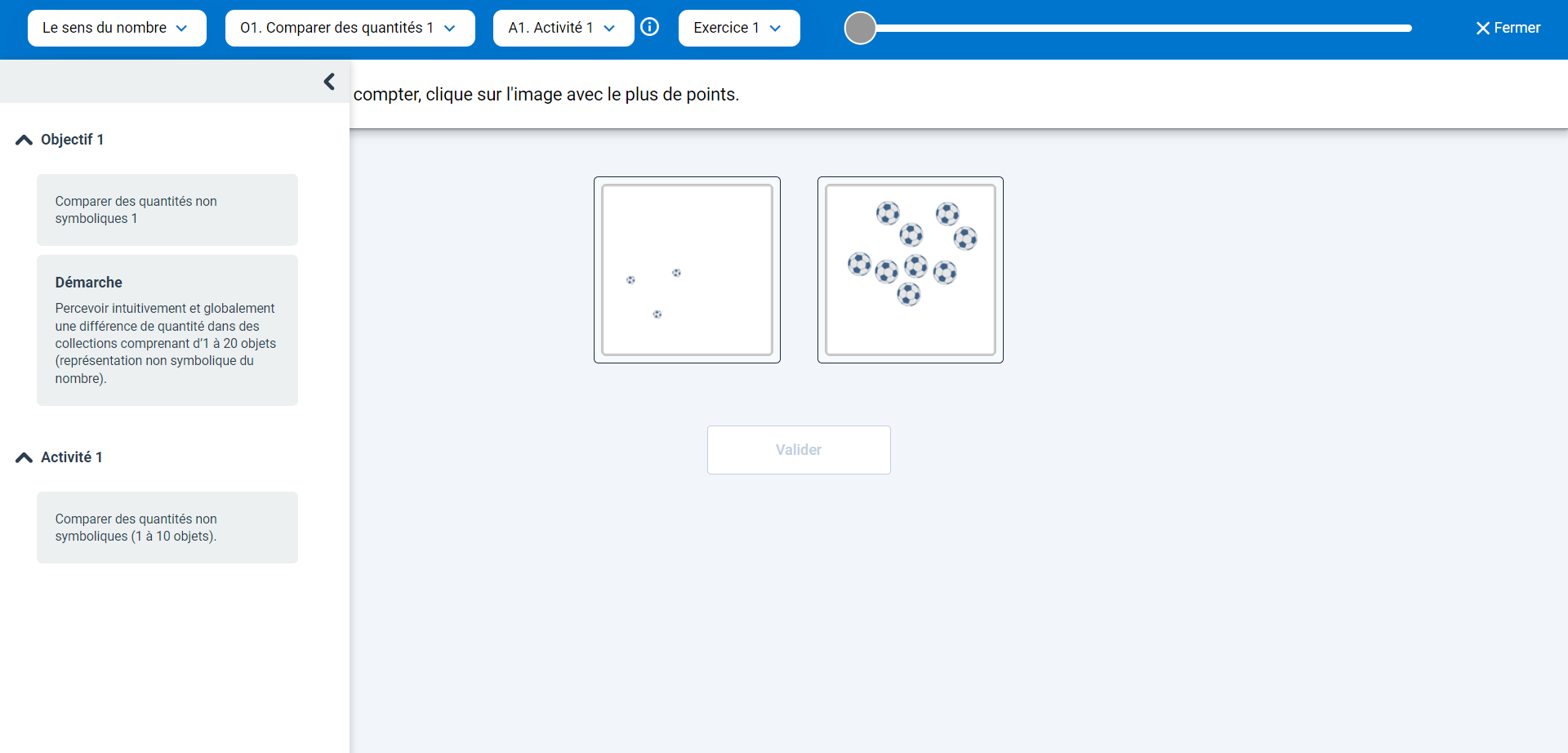 - la possibilité de consulter l'intégralité des exercices dans l'application enseignant en cliquant sur n'importe quel objectif.